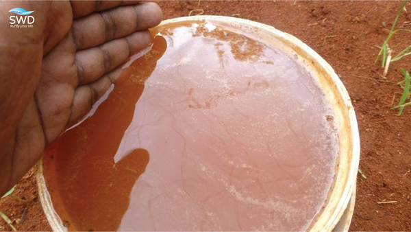Nhận biết nước nhiễm phèn có thể thực hiện nhanh với mắt thường. Khi bơm nước lên hoặc để lắng, bạn dễ dàng quan sát thấy nước chuyển sang màu vàng nhạt, vàng nâu hoặc đôi khi đỏ cam. Bên cạnh đó là lớp cặn lắng xuống đáy hoặc bám trên thành dụng cụ chứa.